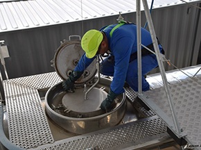 發酵罐需無(wú)菌環境,人工高壓水槍清洗費時低效且易不徹底,影(yǐng)響產品質量。www.91潔研發的發酵罐自動清洗係統,含高壓清洗(xǐ)機、三維洗罐器等,借高壓水(shuǐ)旋轉噴射,三維洗罐器複合運動實現 360° 無死角(jiǎo)清洗。[查看詳情]