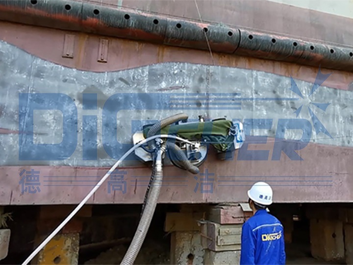 船體除鏽機器人可以大幅提高工作效(xiào)率,以一艘船舶分段合攏焊縫的除鏽打(dǎ)磨工(gōng)作為例,在傳統的生(shēng)產方式中,這個工程(chéng)需要安裝腳手架,雇(gù)傭四個工人花費一天(tiān)時間才能拿完成單(dān)條焊縫的打磨(mó)。船舶除鏽機器人無需安裝腳手架,單(dān)人遙控操作即可完(wán)成全部工作。還可將除(chú)鏽過程(chéng)中產(chǎn)生的鏽渣和廢(fèi)水回收(shōu)排放,達到(dào)減少(shǎo)排放(fàng)、回(huí)收(shōu)環保的目的,解決了船舶除漆除(chú)鏽的環保問題,改善了工作環境(jìng),降低環(huán)境汙染。