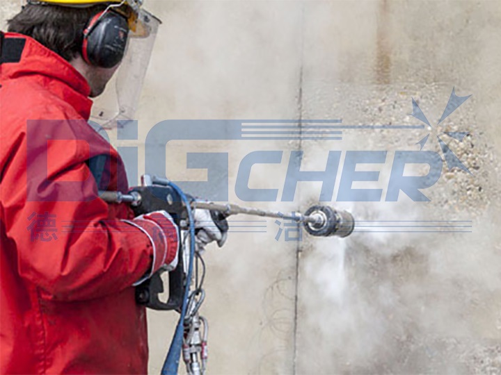 高壓水混凝土表麵鑿(záo)毛技術是由高壓泵對水(shuǐ)體進行加壓,產生100~280 MPa的高壓水射流射入混凝土表麵。高壓水在混凝(níng)土孔隙中產生一(yī)個超壓,當(dāng)其壓力超過混凝土的抗拉強度時,混凝土發生破碎。此方法(fǎ)效率很高,可根(gēn)據現場要求破除任意(yì)深度厚度,且機械化、自動(dòng)化遙控作業安全性能很高,采用水作為(wéi)工作介質,無粉塵汙染(rǎn),對保留(liú)結構無損傷(shāng),鋼筋原樣保留。