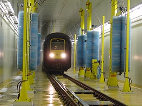 鐵路列車自動清(qīng)洗機可實現對列車車廂、火車頭等外麵進行全麵、徹底的自動清洗,設備主要由噴淋係統、洗刷係(xì)統、幹燥係統、水處理係統(選配)、預警係統及控製係統等組成,可通過噴淋濕潤、預備洗刷、洗滌洗刷、漂洗洗刷和吹掃幹燥等不同的清潔方式,配合列車勻速通過清洗工作場地除去列車表麵的塵埃和汙垢,達到運(yùn)營列車潔淨要求。[查看詳情]