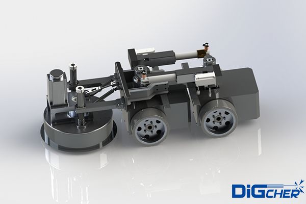 機器人采用(yòng)四輪驅(qū)動,負載能力強,可在在(zài)垂直麵及天花板麵任(rèn)意行走(zǒu);電機(jī)驅動,具有穩定可靠(kào)的(de)立麵吸附措施;機器人前端的毛刷盤負責清理和回收模板表麵的粉塵和殘渣。