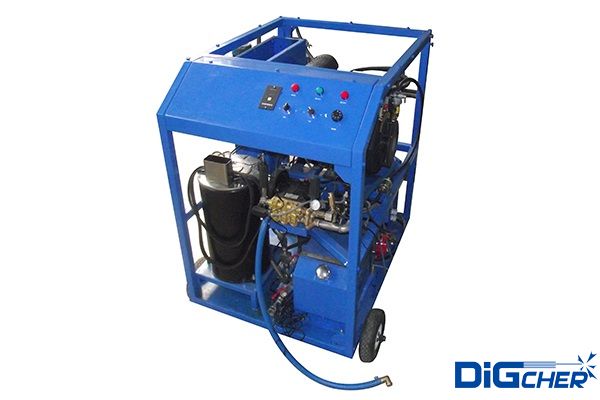 DU200/20H-DM-DQ2 高壓熱水管道解凍機為半密封固定式熱水高壓清洗機,由柴油機拖動高壓柱塞泵產生(shēng)工作壓力。泵的控製為(wéi)高壓側的壓力調節閥、流量控製器和減壓(yā)閥組成來實現操作。當工作時扣動高(gāo)壓水槍扳機通過高壓噴嘴噴射出高壓水(shuǐ)射流。當高壓水(shuǐ)槍關閉時,高壓水自動卸荷流向低壓端,泵為無負荷運行,這時經一段時間後自動停機。