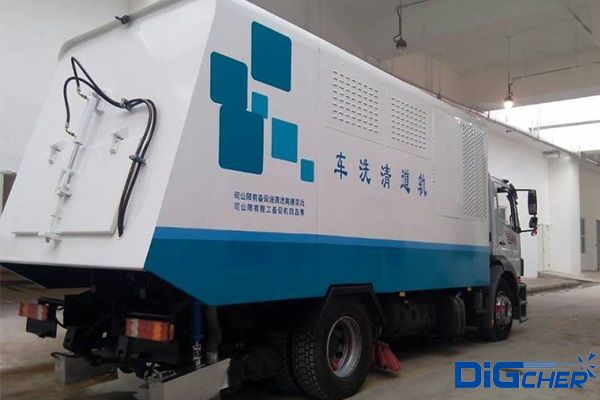 高壓水射流(liú)能夠清理軌(guǐ)道槽內比(bǐ)較頑固的沉積物,在高(gāo)壓水擊(jī)打、剝離的作用下,沉積板結的泥沙等垃圾飄(piāo)起、懸(xuán)浮,在導流罩(zhào)內被負壓吸口(kǒu)順勢輸送至吸塵除塵係(xì)統,存(cún)放垃圾箱體內,滿足了清潔車在此性能上的需要。
